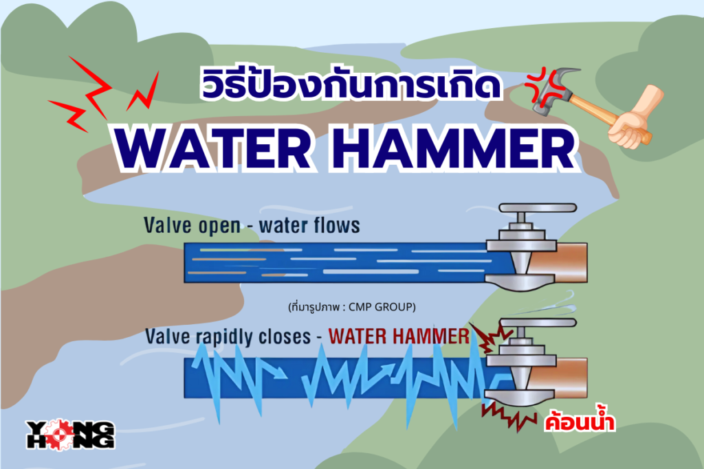 - ความเสียหายต่อท่อและอุปกรณ์: แรงดันกระแทกที่เกิดขึ้นอาจทำให้ท่อแตก รอยต่อรั่ว หรืออุปกรณ์ต่างๆ เช่น วาล์วและปั๊มน้ำ เสียหายได้