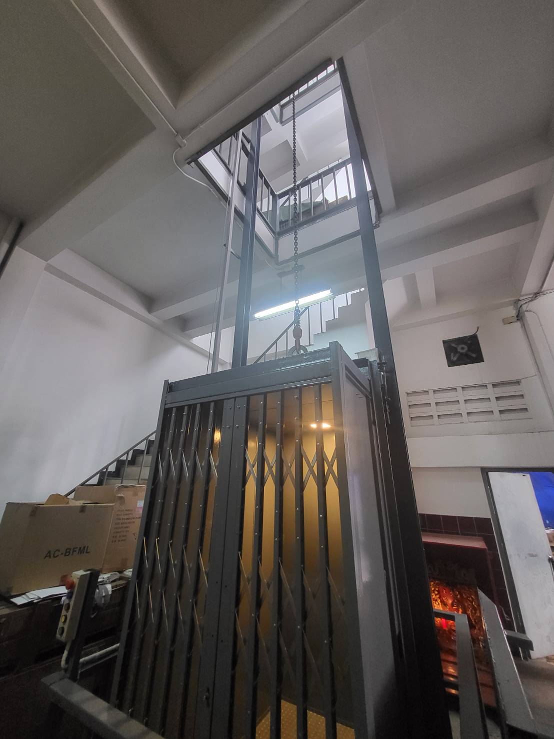 ติดตั้งโครงสร้างลิฟต์ขนสินค้ารับน้ำหนักบรรทุก 300 Kg. + รอกโซ่ไฟฟ้า Rhinos (5 ตัน )