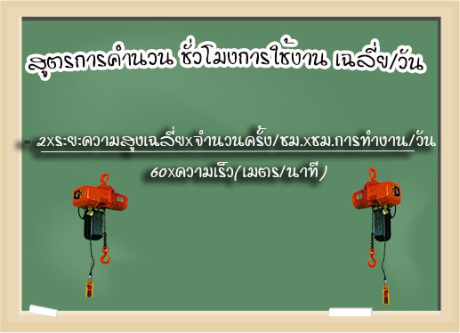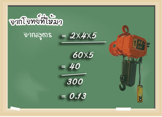 ที่หน้างาน จะต้องยกของในระยะความสูง 4 เมตร เป็นจำนวน 5 ครั้ง/ชั่วโมง โดยทำงานเป็นเวลาต่อเนื่อง 5 ชั่วโมง โดยความเร็วในการยกอยู่ที่ 5 เมตร/นาที รอกตัวนี้จะมีอายุการใช้งานอยู่ที่เท่าไหร่[/vc_column_text][vc_single_image image=”745670″ img_size=”full” alignment=”center”][vc_column_text]จากตารางเปรียบเทียบข้างต้น จะพบว่า ชั่วโมงการทำงานของ รอกไฟฟ้า มีค่าเฉลี่ยอยู่ที่ T 2 หรือ น้อยกว่าหรือเท่ากับ 0.5 ชั่วโมง ตามตาราง รอกตัวนี้ ควรหยุดใช้งาน เพื่อมาซ่อมแซม บำรุงรักษา ทุก ๆ 800 ชั่วโมง[/vc_column_text][vc_column_text]เป็นอย่างไรกันบ้างครับ กับสูตรการคำนวณ อัตราการใช้งานของรอก ที่เหมาะสม ที่เรานำมาฝากกันในบทความนี้ หวังไว้เป็นอย่างยิ่งว่า บทความนี้จะเป็นประโยชน์ต่อผู้ใช้งานรอกนะคร