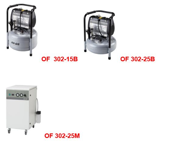 JUN-AIR OF series compressor, air compressor (Air compressor) piston type without oil to lubricate (Oil-less Rocking Piston). There are 7 imported products from the United States, consisting of OF1201, OF1202, OF302, OF322, OF302-15B, OF302-25B and OF302-25M suitable for medical use Dental and industrial laboratories