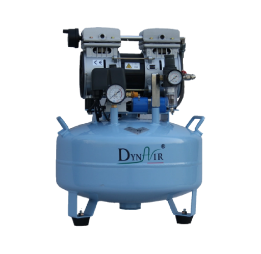 Dynair DA5001 reciprocating compressors Type Oil Work silence (Silent Oil Free Air Compressor) noise is less than or equal to 70 db. Motor 0.75 horsepower (HP) maximum pressure 8 Bar (116 psi) capacity, 22 liters of airflow up to 115 liters per minute (4.06. CFM)