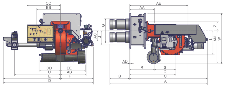 This particular gas/heavy oil burners series has been developed in order to use compressed air or, alternatively, steam as a fluid to atomize the fuel which gives better combustion results when compared to the traditional atomizing systems.
