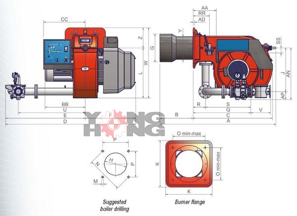 The control panel facia is printed with a mimic diagram complete with lamps to show the sequential stages of the burner operation. Despite to its considerable dimension, this series permit all standard maintenance operations to be carried out by one single person.