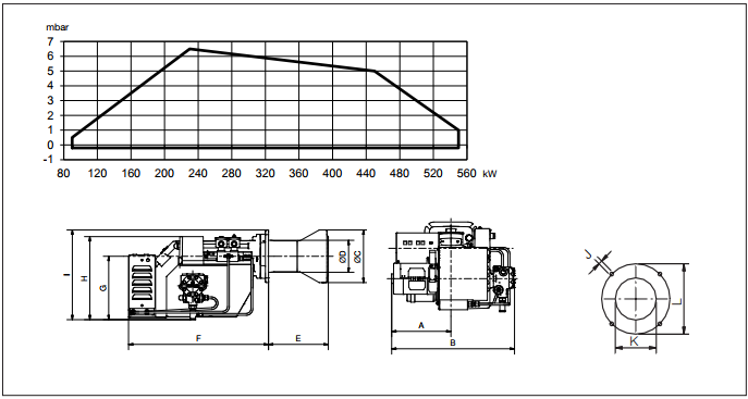 The burner is designed to manage oil with a viscosity of 120 cSt at 20 °C.