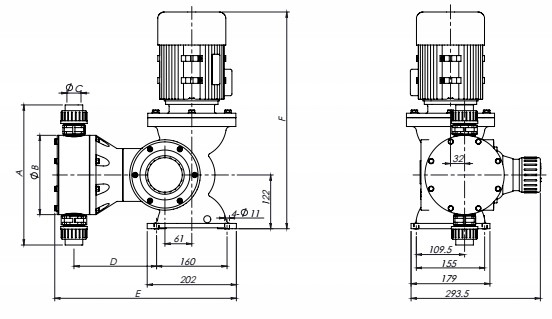Dosser MMG2 series mechanical diaphragm metering pumps are robust and reliable motor driven diaphragm metering pumps. It is heavy-duty and compact designed with high quality performance.The diaphragm is five-layer composite PTFE diaphragm with reinforced plate at the back.It is a reliable pump benefits long-term cost. The stroke length can be adjusted to alter capacity of this pump. Both stroke length and stroke speed can be adjusted to alter capacity.It is an ideal pump for chemical tranfer in water treatment applications.