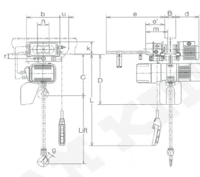 Electric Chain Hoist KITO ER2M Dual Lifting inverter-Single Traversing speed inverter  Ten meters of power supply cable as standard accompanies. Optional length of lift, push button cord and power supply cable besides standard is available on your request. Extending the load chain is prohibited with additional links Steel chain containers are available as option as shown in Section of ‘Chain Containers” if your lift is more than capacity of the standard container volume.
