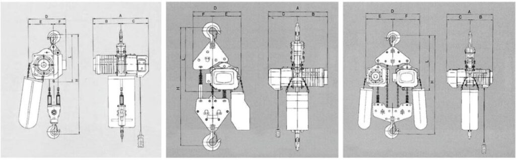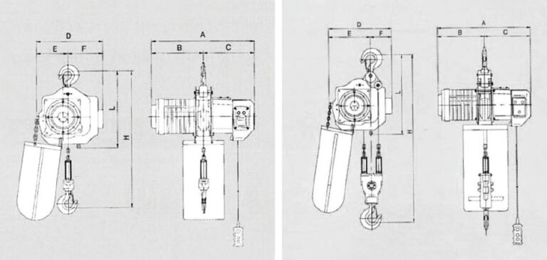| Lifting Speed (m/min) (AD) High/Low | 50Hz | 6.8 | 6.8 | 8.7 | 6.9 | 3.4 | 6.8/2.4 | 6.5/2.2 | 8.7/2.9 | 6.8/2.3 | 3.4/1.1 |