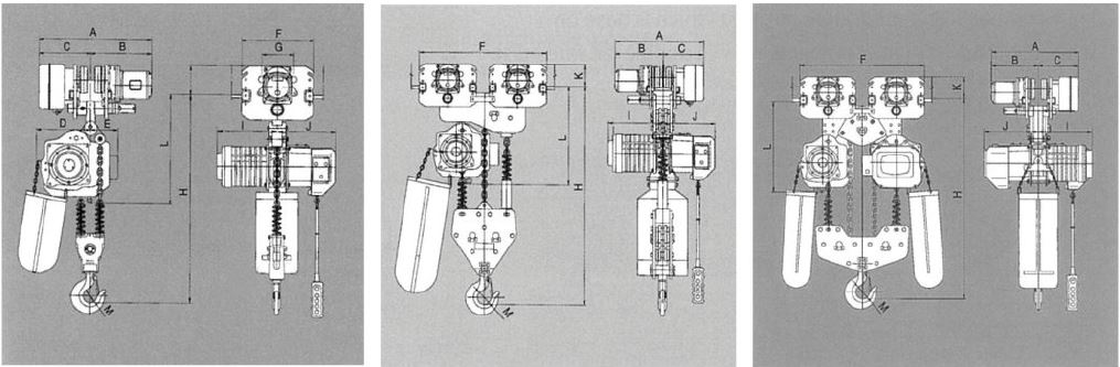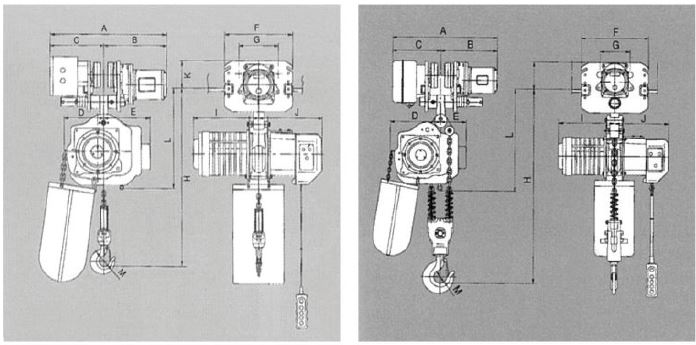 | Trolley motor output (kw) | 0.75/4 | 0.75/4 | (0.75/4)x2 | (0.75/4)x2 | 0.75/4 | 0.75/4 | (0.75/4)x2 | (0.75/4)x2 | |