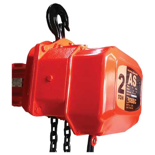 Electric Chain Hoist KOBEC AS/AD Series high quality products imported from Japan. This product is useful for various operations of heavy load. AS/AD series has standard load 0.5-10 Tons with hook type or motor trolley type. AS series is a Single Speed type and AD series is a Dual Speed type. Can increase the chian length.