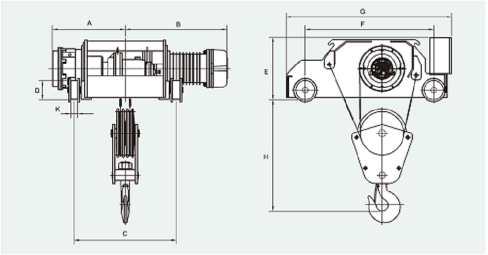 Hoisting | Traversing | Wire Rope | Approximate Dimension (mm) | ||||||||||||||||||