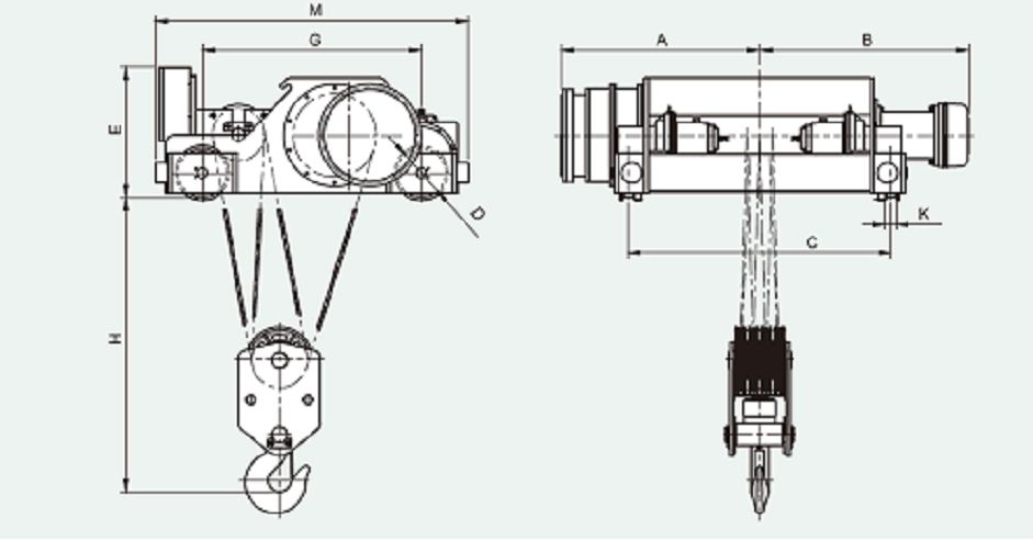 Hoisting Traversing Wire Rope Approximate Dimension (mm) Approximate