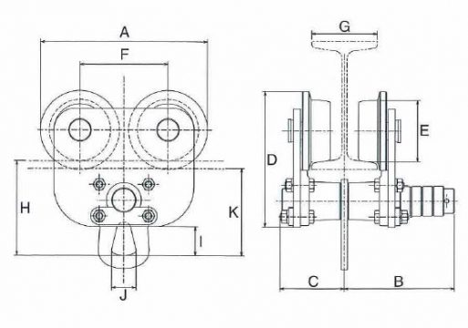 Plain Trolley ELEPHANT Elephant Plain trolley use with chain hoists. High-quality products imported from Japan (Made in Japan) used to hang hoist move on the beam I-BEAM measures for use as weight lifting all 10 models, including models P-0.5, P-1, P. -1.6, P-2, P-3.1, P-5, P-8, P-10, P-15 and P-20 model, size, weight lifted from 0.5 to 20 tons.