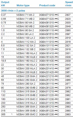 Technical data  IE2 cast iron motors, 3000 r/min