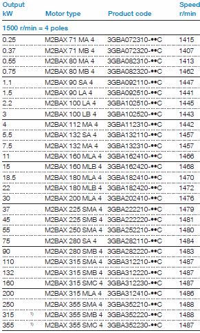 Technical data IE2 cast iron motors, 1500 r/min