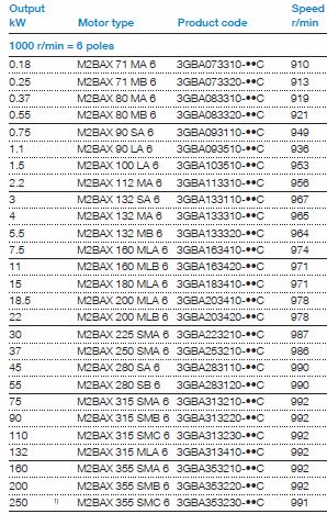 Technical data  IE2 cast iron motors, 1000 r/min