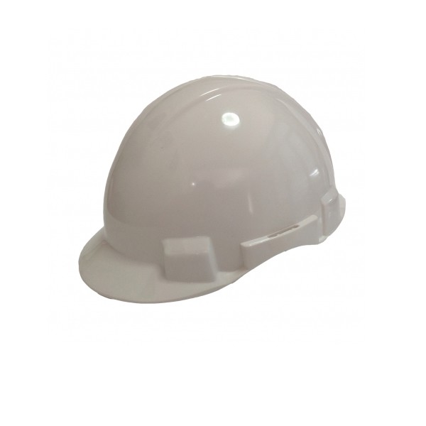 Safety Helmet for use in factories and construction sites, made from High-Density Polyethylene (HDPE), a strong and durable material that is non-conductive to electricity. Comfortable to wear, allows good sweat absorption, lightweight, and coated with anti-irritant material for skin protection. Features an adjustable sliding headband with a 4-point suspension.