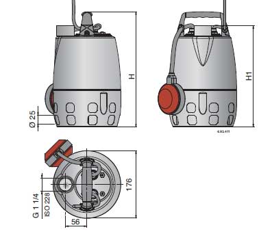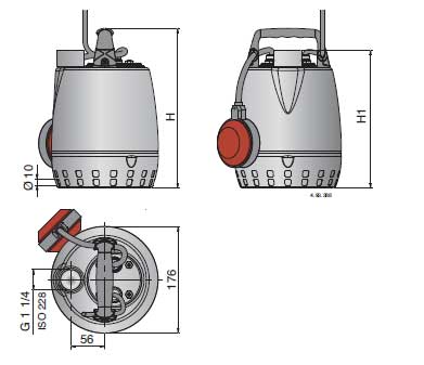 | Pump type | Power supply cable | Float switch | ||||
