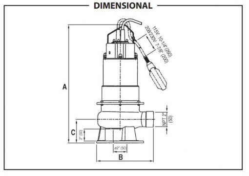 | MODEL | HP | PHASE | VOLTS | AMPS | PUMP-MOTOR DIMENSION (in) | |||