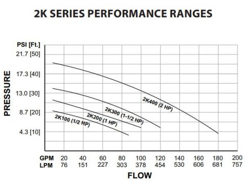 | Pressure Range (up to 19.5 PSI) | 46 ft.Head |