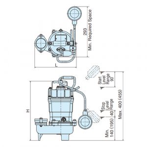 | Discharge Bore | Model | Motor Output | Phase | Starting Method | Solid Passage | Dimensions LxH | Dry Weight | Cable Lenght | ||