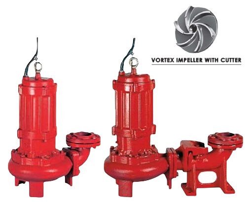Submersible Water Pump KAWAMOTO Model AU4 device used for drainage from sewage tanks, kitchens, and other sources of sewage and waste water. It features a ceramic-coated cutter piece for long service life and excellent performance, an original suction configuration and casing structure, and a motor with built-in auto-cut to prevent burnout.