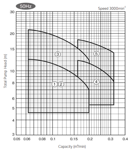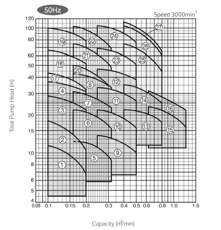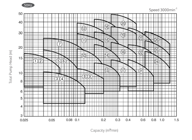 | Capacity (m3/min) | Total Head (m) | Capacity (m3/min) | Total Head (m) | ||||