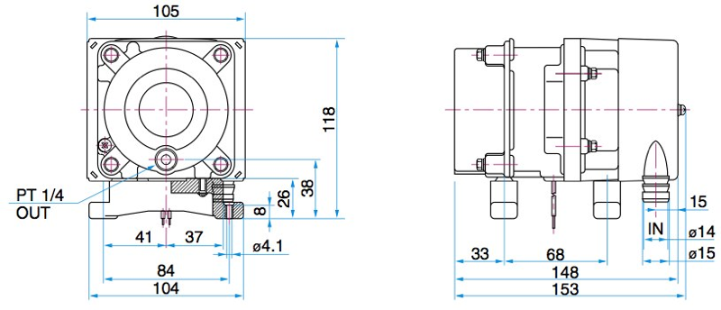 Outlet: ISO Rc 1/4 female threaded