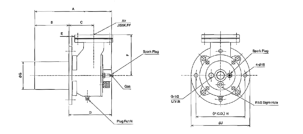 This is a small-sized, light-weighed burner dispensed with conventional caster style. It can be applied to a wide variety of gas flow rates from low to high. For high-temperature furnace applications, a special heat-resistant heat chamber type has been adopted. The employed direct ignition method reduces the equipment cost. This burner is suitable to metal heating and many other uses.