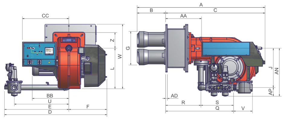 Monoblock burners made in die-cast aluminium housing with relative flange to work on heating generators.
