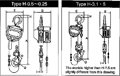 ELEPHANT H-100 Series Chain Block  SPECIFICATIONS AND DIMENSIONS