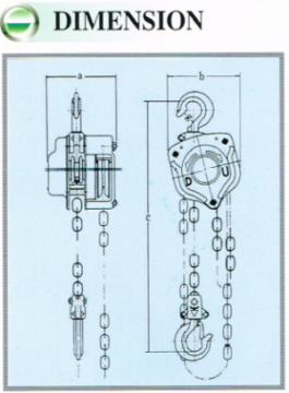 | รุ่น | รับน้ำหนัก | ระยะยก | ขนาดโซ่ยก | ขนาดโซ่ดึง | น้ำหนัก |