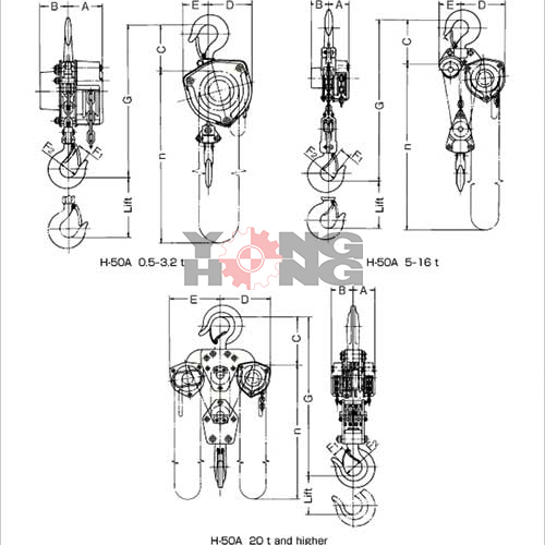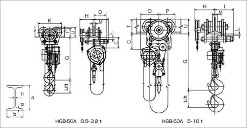 Specifications for Heavy-Duty Geared Trolley Chain Hoist HGB-50A