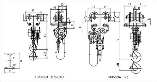 Specifications for Heavy-Duty Plain Trolley Chain Hoist HPB-50A
