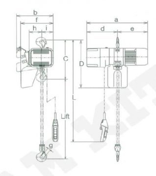รอกโซ่ไฟฟ้า KITO ER2 DUAL SPEED INVERTER Five meters of power supply cable as standard accompanies. Optional length of lift, push button cord and power supply cable besides standard is available on your request. Extending the load chain is prohibited with additional links. Steel chain containers are available as option as shown in Section of “Chain Containers” if your lift is more than capacity of the standard container volume.