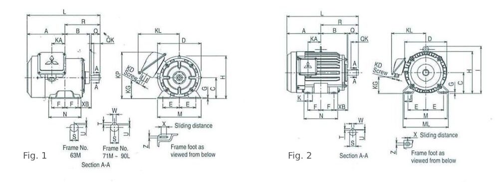 Fig. | Terminal Box | Shaft End | ||||||||||