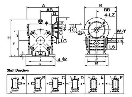 SIZE  Kw  Ratio  Flange      Input Hole   Output Shaft   kg