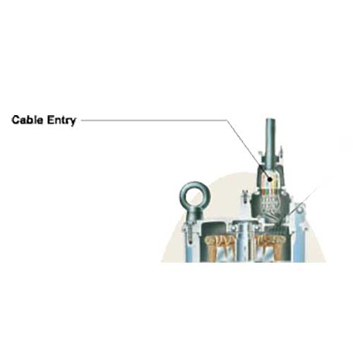 จุดต่อสายไฟ (Cable Entry) TSURUMI เป็นสายเคเบิลที่มีกลไกในการป้องกันการดูดซึมน้ำตามแนวเกลียวของสายไฟไม่ให้ความชื้นเข้าสู่ตัวปั๊มของยี่ห้อ TSURUMI