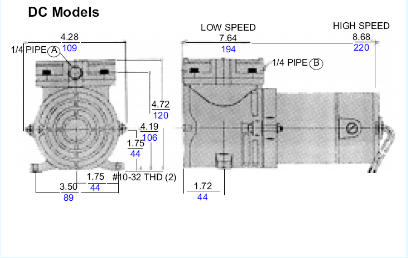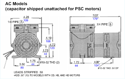 | Motor | HP | 1/8 HP /220 V | 1/16 HP /110V |