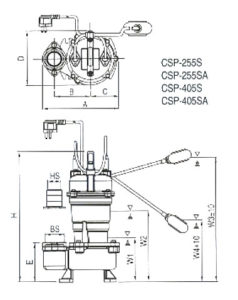 | CSP-255SA | 40 (1½”) | PF 2″ | 244 | 116 | 90 | 172.5 | 131.5 | 417.5 | 130 | 260 | 460 | 170 |