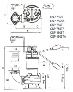 Mitsubishi CSP Series ปั๊มน้ำแบบจุ่ม เหล็กหล่อ ชนิดใบพัด Vortex Impeller เหมาะสำหรับการใช้งานทั่วไป ทั้งงานภาคการเกษตร งานก่อสร้าง งานระบายน้ำเสีย และงานสูบของเหล็วที่มีการหนืดสูง ใช้ได้กับของเหลวที่มีค่า pH 5-9 ที่อุณหภูมิไม่เกิน 60 องศาเซลเซียส