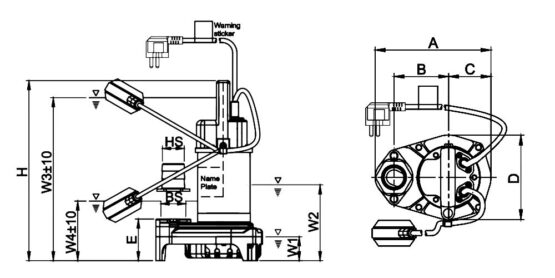 | Model | HS | BS | A | B | C | D | E | H | W1 | W2 | W3 | W4 |