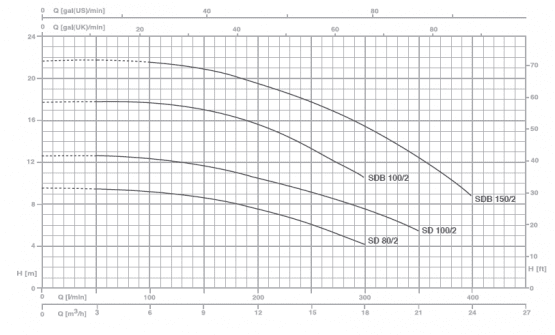 | SDB 100/2 | 130 | 70 | 365 | 180 | 130 | 195 | 90 | 240 | 2” G | 2” G | 390 | 230 | 325 | 18.2 |