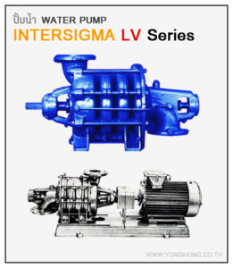 ปั๊มน้ำ INTERSIGMA รุ่น L-V Series เป็น เครื่องสูบน้ำชนิดหอยโข่งแบบหลายใบพัด ( ปั๊มน้ำหลายใบพัด ) สำหรับน้ำสะอาดที่ไม่มีตะกอนต่างๆ ปั๊มหอยโข่ง เหมาะที่จะใช้กับงานสูบน้ำที่มีระยะทางและแรงดันค่อนข้างสูง ที่ต้องการอัตราการไหลของน้ำในปริมาณมากๆ สามารถรองรับอุณหภูมิของน้ำได้ถึง 80 องศาเซลเซียส มีขนาดท่อทางสูบและจ่ายให้เลือกตั้งแต่ 80-125 มิลลิเมตร และจำนวนใบพัดที่ใช้งานมีให้เลือกตั้งแต่ 3-6 ใบ
