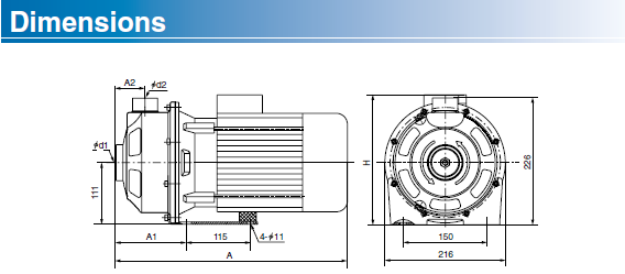 | Model | d1 | d2 | A | A1 | A2 | H | Dry Weight | |