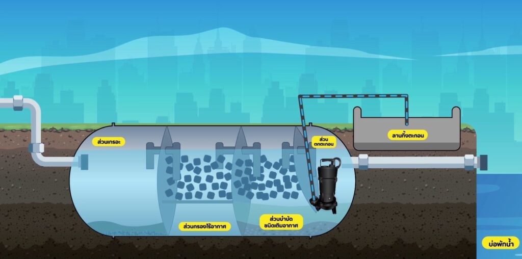 รับชมวีดิโอ : ระบบน้ำในอาคารและปั๊มจุ่มที่ใช้ในระบบบำบัดน้ำเสีย